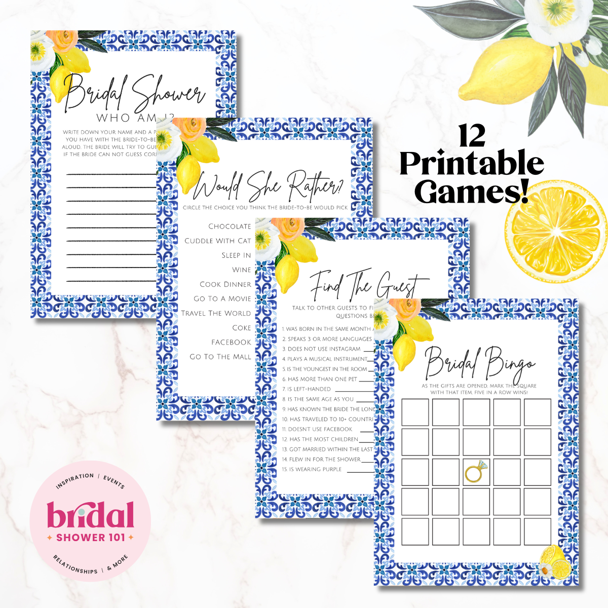 12 Lemon-Themed Printable Bridal Shower Games Bundle