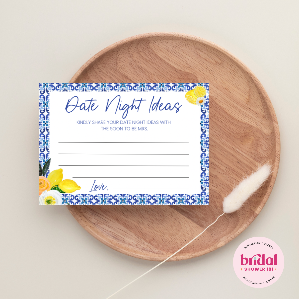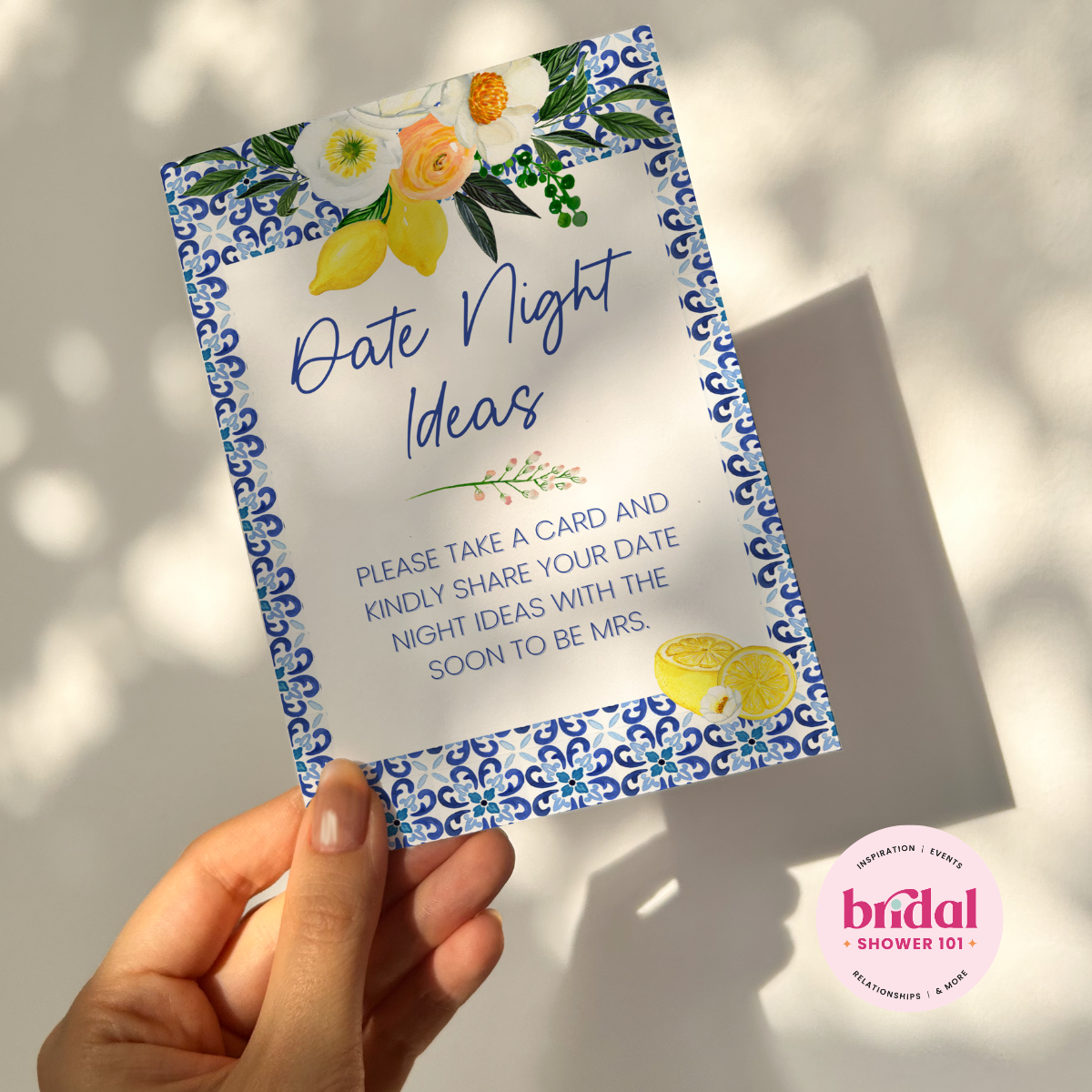 Bring a fresh and thoughtful touch to your bridal shower with this Lemon-Themed Date Night Ideas activity! Guests will love sharing their best date night suggestions for the happy couple, creating a keepsake filled with fun and meaningful ideas the bride and groom can enjoy long after the wedding.