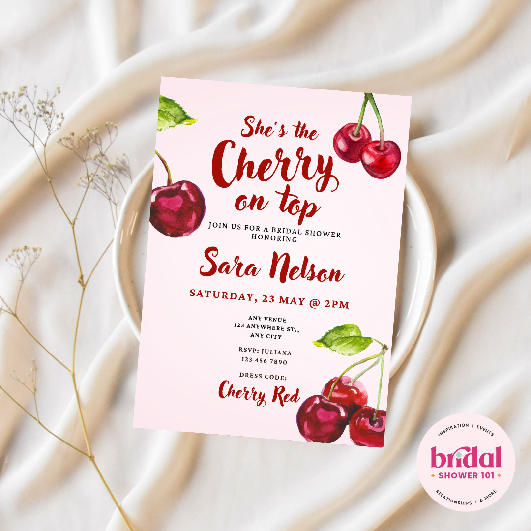 🍒 Cherry On Top Bridal Shower Invitation | Editable Canva Template